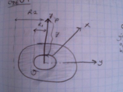 Ortası boşluk düzgün bir disk pozitif V yüzeysel yük yoğunluğu tarıyor a.diskin toplam yüküü bulunuz. b.z ekseni üzerindeki herhangi bir noktadaki E alanı bulunuz. x y z eksenlerinin sourda yerleri değisik.y koordinatında z.x koordinatında y.z koordanitında x var Resim 001.jpg