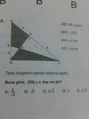 Resimdeki geometri sorusunu çözemedim çözümü hakkında bilgisi olanlardan bilgi vermesini rica ederim. Eğer cevap anahtarı yanlış değilse cevap "A" 379664_418632898262551_1602316437_n.jpg