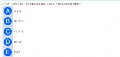 A = 19! + 18! B = 19! – 18! olduğuna göre, B sayısı A sayısının kaç katıdır? Soru ve cevaplar için resme bakınız... yardım edermisiniz çözümü hakkında soru.png